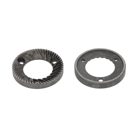 külső ø 58 mm - belső ø 33.4 mm | vastagság 8.6 mm - 3 rögzítő furat | Fiorenzato által készített őrlők speciális | M340 acélból, amelyet kifejezetten az | élelmiszerekkel való érintkezésre terveztek. | Magas kopásállóságot és korrózióállóságot garantál.