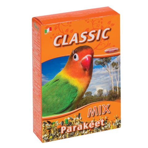 A Fiory Parakeet MIX Classic egy prémium minőségű magkeverék törpepapagájok számára, amely biztosítja a szükséges tápanyagokat, erősíti az immunrendszert és támogatja a tollazat egészségét. Természetes, adalékanyag-mentes összetevőkből készült. A Fiory