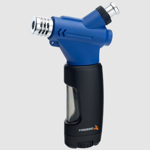 Fekete és kék színű Firebird öngyújtó normál lánggal, pipához is kiválóan használható. Az alján után tölthető bármilyen öngyújtó gázzal. A marokba illő öngyújtó lángjának a mérete egy nagy méretű láng állító kerékkel szabályozható. Az oldalán lévő praktikus átlátszó résznek köszönhetően a gáz töltöttségi szintje nyomon követhető. Fegyverszerű kialakításának köszönhetően biztosan nem égetjük meg vele a