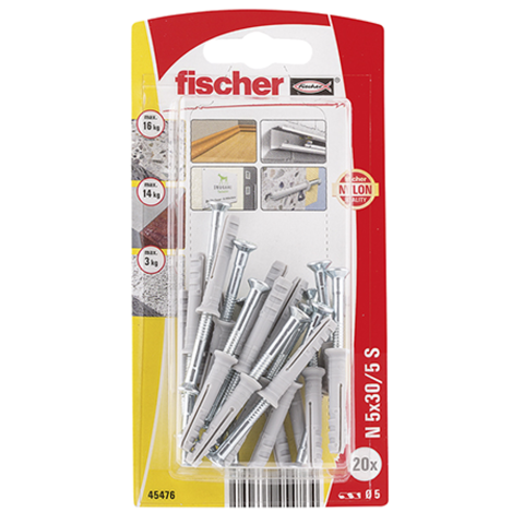 A Fischer beüthető dübel, 5 mm-es furatátmérővel, egyszerű és gyors szerelést tesz lehetővé. Beépített beütés elleni védelme megakadályozza az elakadást, így problémamentes szerelést biztosít. A szegcsavar menete és a csillagfejű tartóelem lehetővé teszi a csavar kicsavarását, ezáltal az utólagos leszerelés is könnyen megoldható. A szegcsavar beütésekor a dübel két irányban szétterpeszt, és így biztonságosan rögzül az építőanyagban. A faszerkezetek