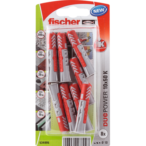 Dűbel "FISCHER DUOPOWER" - 8db 10x50mm dűbel - elő és átmenő szereléshez - feszítés, alakformálódás, csomósodás - alkalmazható: beton, tégla, gipszkarton, üreges födém, terméskő, forgácslap