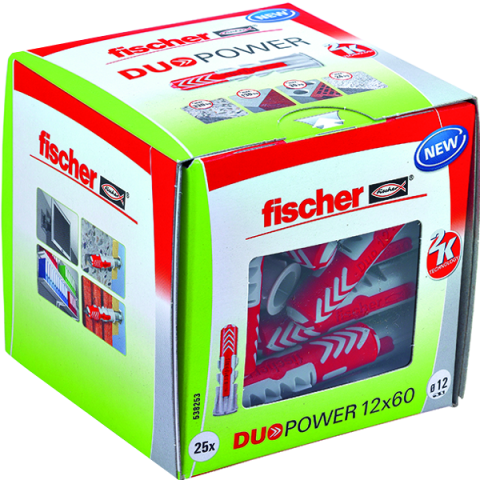 Dűbel "FISCHER DUOPOWER" - 25db 12x60mm dűbel - elő és átmenő szereléshez - feszítés, alakformálódás, csomósodás - alkalmazható: beton, tégla, gipszkarton, üreges födém, terméskő, forgácslap