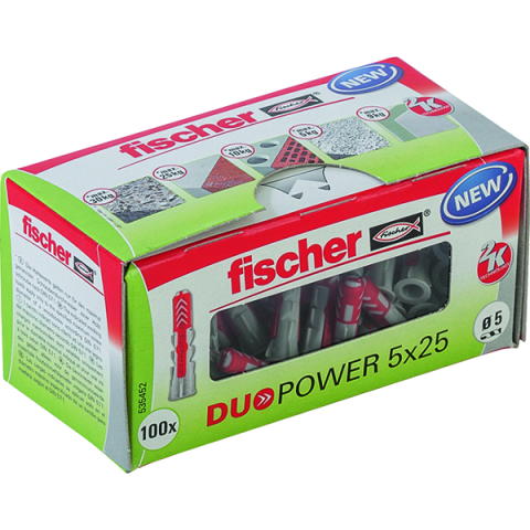 Dűbel "FISCHER DUOPOWER" - 100db 5x25mm dűbel - elő és átmenő szereléshez - feszítés, alakformálódás, csomósodás - alkalmazható: beton, tégla, gipszkarton, üreges födém, terméskő, forgácslap