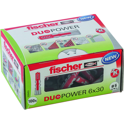 Dűbel "FISCHER DUOPOWER" - 100db 6x30mm dűbel - elő és átmenő szereléshez - feszítés, alakformálódás, csomósodás - alkalmazható: beton, tégla, gipszkarton, üreges födém, terméskő, forgácslap