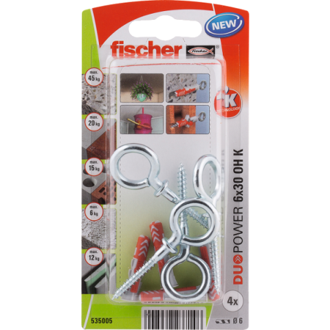 Dűbel "FISCHER DUOPOWER" - 4db 6x30mm dűbel 4db csavarral - elő és átmenő szereléshez - feszítés, alakformálódás, csomósodás - alkalmazható: beton, tégla, gipszkarton, üreges födém, terméskő, forgácslap