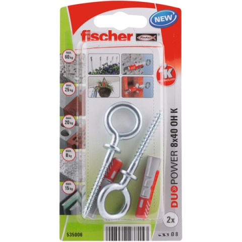 Dűbel "FISCHER DUOPOWER" - 2db 8x40mm dűbel 2db csavarral - elő és átmenő szereléshez - feszítés, alakformálódás, csomósodás - alkalmazható: beton, tégla, gipszkarton, üreges födém, terméskő, forgácslap