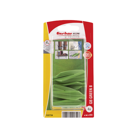 Legalább 50% megújuló nyersanyagból készült és ezáltal nagy mértékben környezetbarát. Hatékony és biztos tartás mint a hagyományos GB dübelnél. A bordákon eloszló nyomóerő nagy terhelhetőségi értéket eredményez puha porózus építőanyagban, ezáltal a legjobb teherbírási teljesítmény érhető el. Speciális szerelőszerszám nem szükséges, egyszerű és gyors beütő-szerelés. Homlokzati rögzítésnél vagy nedves, kültéri helyeken korrózióálló A4 acél