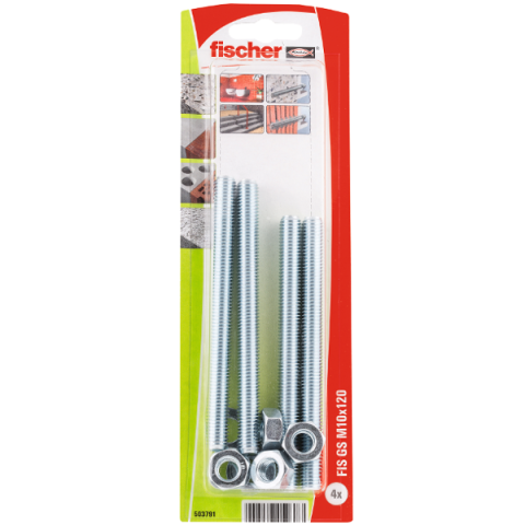 Menetes szár "FISCHER" - 4db 10X120mm menetes szár 4db alátéttel 4db M10 anyával