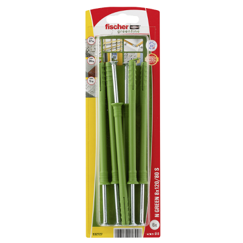 1 kép Fischer N 8X120 GREEN K 6 DB BEÜTŐ DÜBEL + CSAVAR