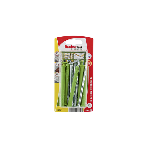 1 kép Fischer N 8X80 GREEN K 10 DB DÜBEL BEÜTŐ + CSAVAR