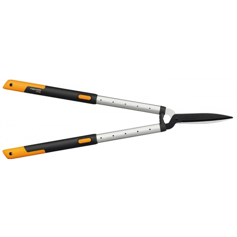 A Fiskars SmartFit HS86 teleszkópos sövénynyíró olló kényelmes kézi sövénynyíró olló sövények, fák és rózsabokrok visszavágásához. Az olló növények vagy bokrok formára nyírására is kiválóan alkalmas. Meghosszabbítható sövénynyíró olló A Fiskars SmartFit sorozathoz tartozó sövénynyíró olló az állítható hosszúságú karoknak köszönhetően nagyobb hatótávval rendelkezik. A kar egy gombnyomással 68 cm-ről 93 cm-re meghosszabbítható. Közben Ön