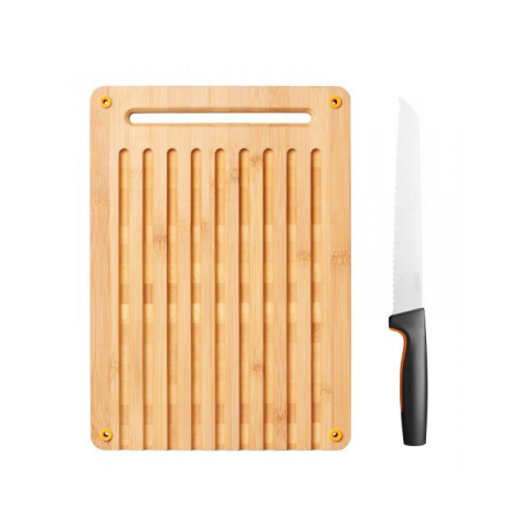 1 kép FISKARS 1057551 FF Bambusz vágódeszka & kenyérvágó kés készlet (fis1057551)