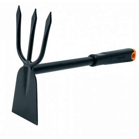 Kettős fejkialakítása által ideális a talaj lazításához és levegőztetéséhez egyaránt. A kapa pengéje élezett, így keményebb talajon is használható, az ültetővilla fogai nagyobbak, ezáltall sokkal hatékonyabb munkavégzést tesznek lehetővé.