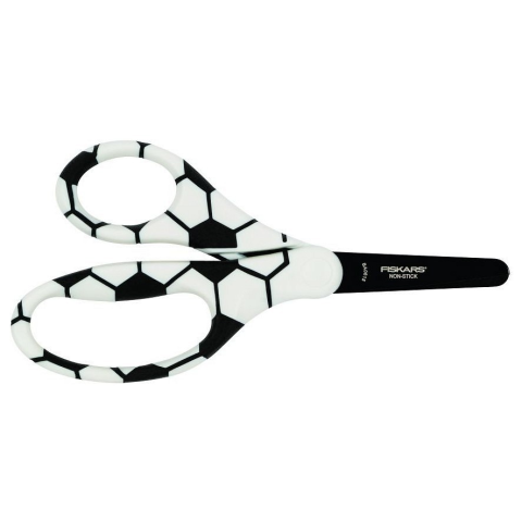 Fiskars gyerekolló focilabda motívummal, 13 cm hosszú eszköz (200671). A nyél kifejezetten kicsi kezekhez lett kialakítva. Jobbkezeseknek ajánlott.