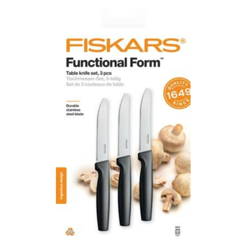 Késkészlet, asztali, 12 cm, FISKARS Functional Form fekete (IF1057562) Sokoldalú, fogazott pengéjű kések asztali és konyhai használatra. -tartós japán rozsdamentes acél penge -biztonságos ergonomikus markolat -mosogatógépben elmosható -kényelmes és kön