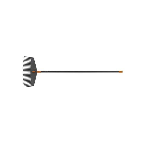 A Fiskars Solid L lombseprű virágok, levelek, gyomok és fűnyesedék összeseprésére szolgál utakon és gyepfelületen. A lombgereblye széles seprűfejének köszönhetően különösen alkalmas nagyobb alkalmazási területekre. Széles gyepgereblye ergonomikus markolattal , A lombgereblye széles seprűfeje műanyagból készült. A 25 lapos és ívelt foggal, amelyek húzás irányában dolgoznak, gyorsan söpörheti a faleveleket. Az ergonomikus markolat és a hosszú, könnyű alumí