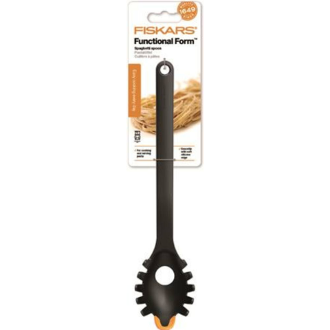 Tésztakanál, FISKARS (IF1027301) Az eszköz egyik foga segít az edény könnyebb kitörlésében. A még hatékonyabb használatért hosszabb fogakkal kialakított. -a hosszú fogak segítik a tészta könnyű kezelését -karcálló szilikonhegy a szószok egyszerű kikap