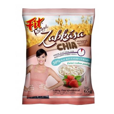 A Fit Reggeli zabkása chia maggal és eperrel kitűnő és gyorsan elkészíthető alternatívát jelent a reggeli étkezéshez vagy akár tízórai gyanánt. Élelmi rostban gazdag élelmiszer 30%-kal kevesebb cukorral. Percek alatt elkészíthető. Elkészítési javaslat: A