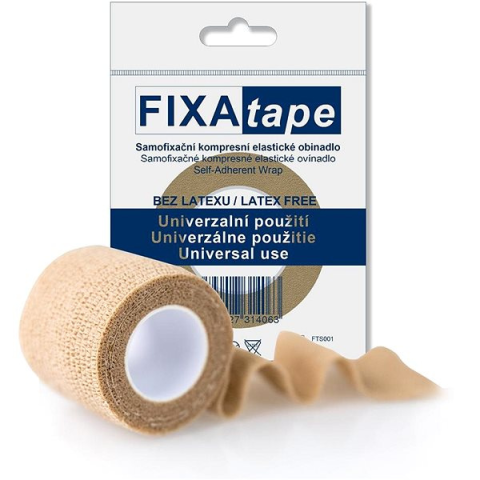 Kötszer - latex nélküli, hossza 4,5 m, szélessége 7,5 cm, bézs, piros és kék szín A FIXAtape STRETCH kötszer ideális a végtagok rögzítésére, izmok megtámasztására, kötések, kanülök megtartására vérvétel esetén, valamint sportolás közbeni izomhúzódások megelőzésére és megszüntetésér