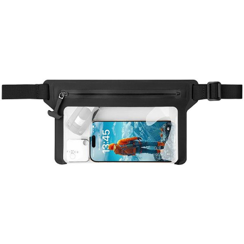 Vízálló tok - derékpánt, rendkívül tartós Hypalon mesh 420D anyagból, átlátszó zseb érintőképernyővel és Face ID-vel kompatibilis, tágas zseb telefonnak, pénztárcának, kulcsoknak és egyéb személyes tárgyaknak, akár 7,5"-es (200 x 138 mm) telefonokhoz alkalmas, vízálló cipzáras záródás, IPX8 tanúsítvánnyal - akár 5 m mélységig meríthető 1 órán át, állítható pánt akár 127 cm hosszúra, méretek 220 x 140 mm FIXED Dry Belt - vízálló mobiltelefon t