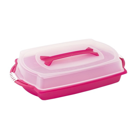 A 47x30x10 cm-es tortabúra egy vidám, színes segítőtárs a kalácsok, sütemények, valamint más ételek szállítása, ezen kívül tárolása során. Hűtőben alkalmazva segít az élelmiszerek frissen tartásában. A tetején fogóval van ellátva, így könnyebb a szállítás