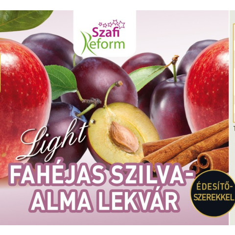 Szafi Reform Fahéjas szilva-alma lekvár 350 g 65%-kal csökkentett energia és 60%-kal csökkentett szénhidráttartalmú lekvár. JAVASLAT: Kizárólag száraz, tiszta evőeszközökkel érintkezzen a lekvár, ne nyúljunk bele vizes, vajas, morzsás