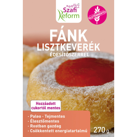 Szafi Reform Fánk lisztkeverék édesítőszerrel (gluténmentes) 270 g A Szafi Reform fánk lisztkeverék egy élelmi rostban gazdag, gluténmentes lisztkeverék, amely segítségével egyszerűen készíthetünk tejmentes, élesztőmentes, szójamentes