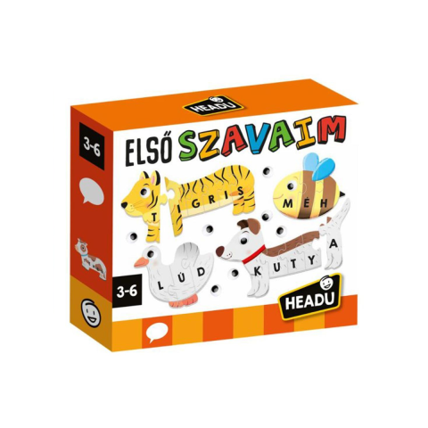 Az „Első szavaim” illesztőjáték egy különleges, magyar nyelvű oktatójáték, amely segít a gyerekeknek az első szavaik elsajátításában, miközben szórakoztató módon fejleszti a memóriájukat és a finommotoros képességeiket. A játék állatok képeit és nevét tartalmazó, puzzle-darabokból áll, amelyeket a kicsik összeilleszthetnek, hogy teljes képeket és szavakat