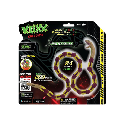 Ez az építhető csörgőkígyót úgy alakíthatod ahogy akarod, hiszen, több mint 200 mozgatható ponttal rendelkezik, lehetővé téve a gyerekek számára, hogy különféle pózokba állítsák és élethű mozdulatokat adjanak neki. A Klixx Creaturez csörgőkígyó kiváló eszköz stop motion animációk és rövidfilmek készítéséhez, mivel a rugalmas kialakítás mindenf