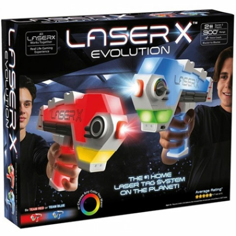 Ezzel a vagány szettel a gyerekek azonnal el is kezdhetnek játszani, hiszen a csomagban két Laser-X Evolution fegyver található, így a két játékos azonnal összemérheti stratégiai tudását és ügyességét! A legújabb Laser-X Evolution fegyver hatótávolsága 90 méter, a találatokat számláló érzékelő pedig magába a fegyverbe van beépítve, így nem szükséges a kü