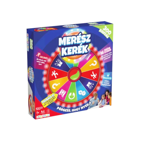 A Merészkerék interaktív családi társasjáték garantáltan feldobja a családi estéket és összejöveteleket. Már 8 éves kortól izgalmas szórakozást kínál, így az egész család számára remek választás. A játék lényege, hogy a résztvevők felváltva pörgetik a színes kerekeket, amelyek különböző izgalmas és szórakoztató feladatokat tartogatnak. Az interaktív