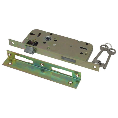 Beltéri bevésőzár, 45×90×20×7mm, 2 kulcsos, szögletes előlappal, Flame