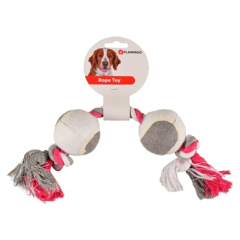 1 kép Flamingo Flamingo kötél játék teniszlabdákkal kutyáknak, rózsaszín (Labda ø 6 cm | Kötél: 40 cm)
