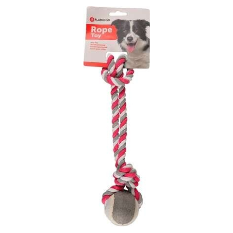 1 kép Flamingo Flamingo kötél játék teniszlabdával kutyáknak, rózsaszín (Labda ø 6 cm | Kötél: 40 cm)