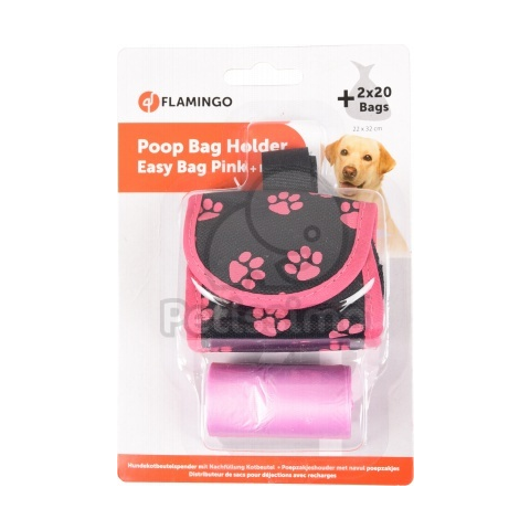 Jellemzők: - Kutyagumigyűjtő zacskó adagolására alkalmas tartó. - Mancs mintával. - Különböző színekben. - 2 x 20 db zacsival.