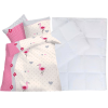 : szett tartalma 1 db ágyneműhuzat 100x135 cm-es méretben 1 db párnahuzat 40x60 cm-es méretben 1 db paplan 100x135 cm-es méretben ( 300g ) 1 db párna 40x60 cm-es méretben ( 80g ) a paplan-párna anyaga 100% poliészter : gyerekágynemű anyaga 100% pa
