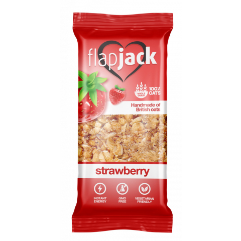 Flap Jack zabszelet epres 100 g Fagyasztva szárított, liofilizált eper hozzáadásával készül. A FlapJack szeletek magas zab- és rosttartalmának köszönhetően kiváló kiegészítője az egészséges táplálkozásnak. Vegetáriánusok számára is ajánlott. Összetev