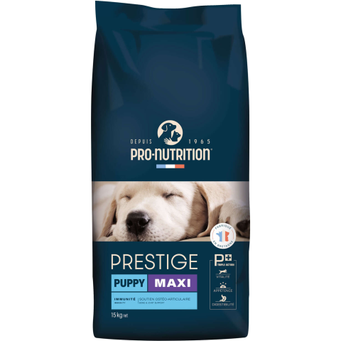A Pro-Nutrition Prestige Puppy Maxi Pork (Régebben Flatazor Prestige Junior Maxi) egy teljesértékű táp nagyméretű kölyök és növendék kutyák számára. A nagytestű kutyáknak jóval hosszabb a növekedési időszaka. Ezen időszak alatt rendkívül fontos, hogy számukra megfelelő eledelt kapjanak, ezáltal mind a kutya csontozata, mind pedig emésztőrendszere megfelelően fejlődjön ki. E-vitamint, C-vitamint valamint szelént tartalmaz, melyek kiválló antioxidánsok. A