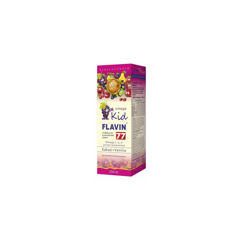 A Flavin77 Omega Kid pink szirup egy ízletes és tápláló étrend-kiegészítő gyermekek számára. 77 féle polifenol/flavonoid tartalmú növényi összetevővel, kakaóval és vaníliával készült. Támogatja az immunrendszert, elősegíti az idegrendszer fejlődését és javítja a koncentrációt.