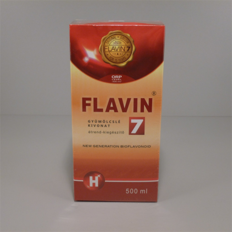 Flavin 7 ital 500 ml Étrend-kiegészítő. Hét fajta gyümölcslé kivonat, polifenol/flavonoid, resveratrol(növényi antioxidánsok)tartalommal. Ezek az anyagok hozzájárulnak a szervezetünkben zajló