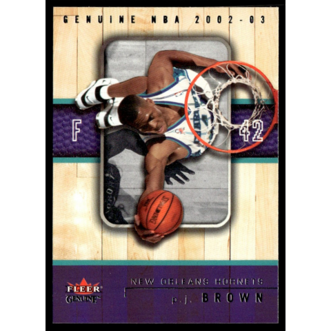 Az eladásra kínált 2002-2003 Fleer Genuine #15 P.J. Brown kosaras kártya NM-MT állapotban van. A kosaras kártyákat legtöbb esetben UP Platinum/Standard puha védőtokban és/vagy UP Toploader (kemény védőtok)-ben küldjük. Az eladásra kínált 2002-2003 Fl