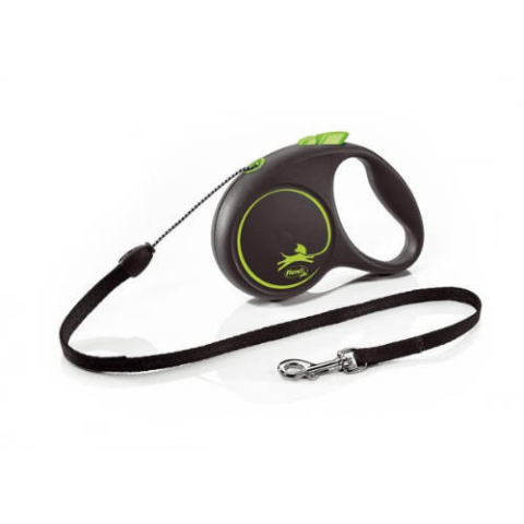 Flexi Black Design | Automata zsinóros póráz - S nyakörv, póráz, hám kutyáknak 1 kép