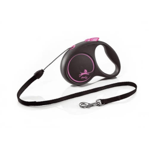 Flexi Black Design "S" (pink) - zsinóros automata póráz (5m)