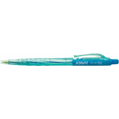 Golyóstoll, 0,25 mm, nyomógombos, FLEXOFFICE Jonat, kék a tinta színével megegyező áttetsző, anyagában mintás, műanyag tolltest nyomógombos tollszerkezet Wolframkarbid tollhegy vonalvastagság: 0,25 mm Gyártó/első EU forgalmazó elérhetősége: Ofis kons