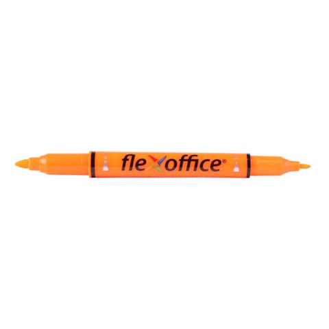 Szövegkiemelő, 1,0/4,0 mm, kétvégű, FLEXOFFICE HL01, narancs a tinta színével megegyező kupak élénk, fluoreszkáló színek a kiemelt szöveg fénymásolható, nem maszatolódik kétvégű szövegkiemelő írásvastagságai: kúpos hegy: 1,0 mm; vágott hegy: 4,0 mm Gy