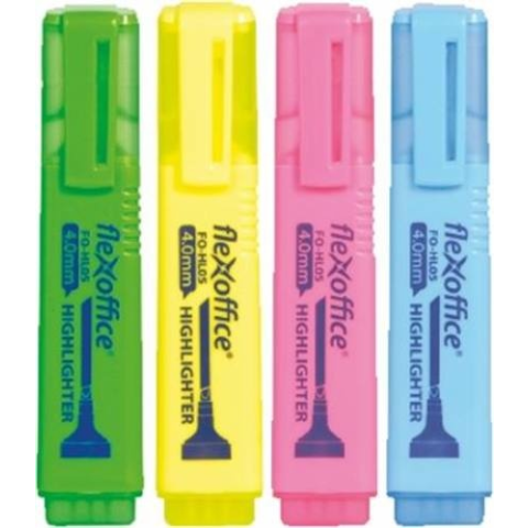 Szövegkiemelő, 1-4 mm, FLEXOFFICE HL05, 4 különböző szín (FOHL05V4) a tinta színével megegyező kupak élénk, fluoreszkáló színek a kiemelt szöveg fénymásolható, nem maszatolódik írásvastagság: 1-4 mm Gyártó/első EU forgalmazó elérhetősége: Ofis konsum