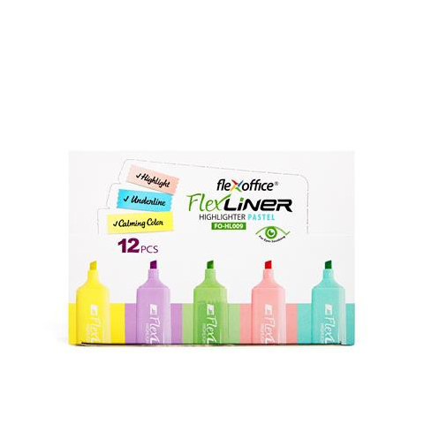 1 kép FLEXOFFICE Szövegkiemelő készlet, 1-5 mm, FLEXOFFICE "Flexliner", vegyes pasztell színek