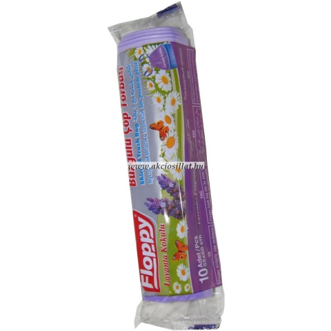 Floppy Levendula Illatú Összehúzható Szemeteszsák – 10 db, 55x60 cm, 30L A Floppy levendula illatú összehúzható szemeteszsák ideális választás a háztartási hulladék higiénikus kezelésére. Kellemes levendulaillata frissességet biztosít, miközben a str