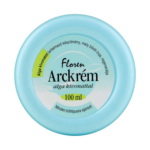 Floren alga arckrém 100ml Hivatalos magyarországi forgalmazótól. Leírás: Floren alga kivonatot tartalmazó hidratáló és regeneráló arckrém. 100 ml tégelyes kiszerelésben. Tengeri alga kivonat tartalmú arckrém, mely hidratálja és feszessé teszi az arcbőrt. Méregtelenítő és tisztító, hatóanyagai felgyorsítják a sejt anyagcseréjét. Használatával a bőr visszanyeri fiatalságát. Kiszerelés: 100 ml