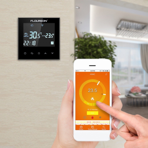 1 kép FLOUREON Wifis termosztát kazán kapcsolására okostermosztát kontaktot ad fekete